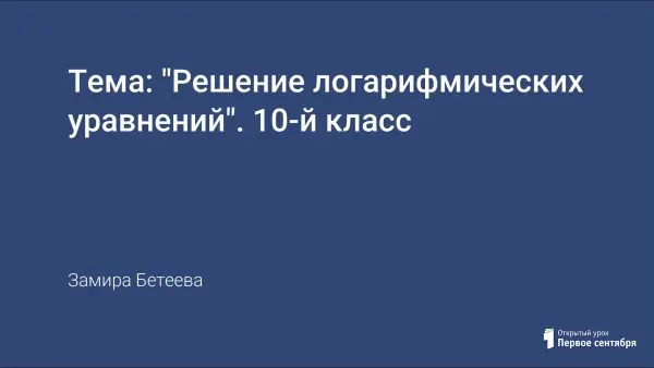 Тема: "Решение логарифмических уравнений". 10-й класс