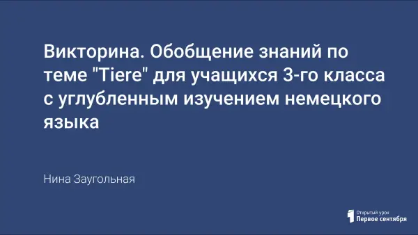 Викторина призвана расширить интерес учащихся к изучению немецкого языка. В ходе викторины учащиеся в нестандартной форме могут применить свой знания по теме «Tiere». В игровой форме учащиеся выполняют занимательные лексико-грамматические упражнения. В процессе работы в группах дети овладевают культурой общения, умением трудиться сообща, расширяется их кругозор.