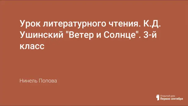 Цели урока: познакомить детей с жизнью и творчеством К.Д. Ушинского; читать произведение по ролям; отрабатывать навыки выразительного чтения; учить характеризовать героев произведения, находить главную мысль произведения; воспитывать стремление к доброте, сопереживанию.
