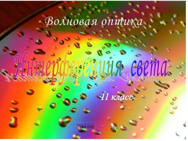 Цель урока: рассмотреть физическую сущность интерференции волн; выделить свойства и средства описания явления интерференции света; формировать представления о единстве электромагнитных волн и света; уметь разъяснять условия наблюдения интерференции света; познакомить с биографией и научной работой Томаса Юнга; наблюдать явления интерференции в природе. Материал презентации можно использовать при подготовке к ЕГЭ.