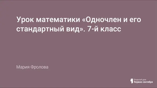 На уроке дети знакомятся с понятием «одночлен», его стандартным видом, степенью одночлена, нахождением значения одночлена. Учащиеся учатся применять знания при решении различных математических заданий. Воспитывается познавательный интерес к предмету, развивается логическое мышление, математическая речь и вычислительные навыки учащихся.