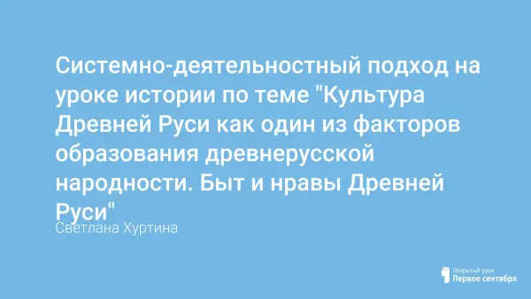 Системно-деятельностный подход на уроке истории по теме "Культура Древней Руси как один из факторов образования древнерусской народности. Быт и нравы Древней Руси"