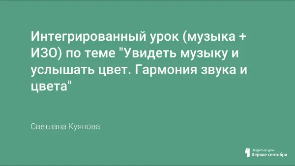 Интегрированный урок (музыка + ИЗО) по теме "Увидеть музыку и услышать цвет. Гармония звука и цвета"