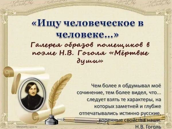 Занятие актуализирует знания воспитанников по теме «Галерея образов помещиков в поэме Н.В. Гоголя «Мертвые души».