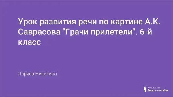 Урок развития речи по картине А.К. Саврасова «Грачи прилетели» соответствует новым ФГОС по русскому языку. Подробно расписаны цели и метапредметные результаты обучения. В уроке использованы музыкальное сопровождение, стихотворения, работа с текстом, а также разные формы работы с классом. Кроме того, работа по картине расширяет знания учащихся по изобразительному искусству и межпредметные связи с другими уроками.
