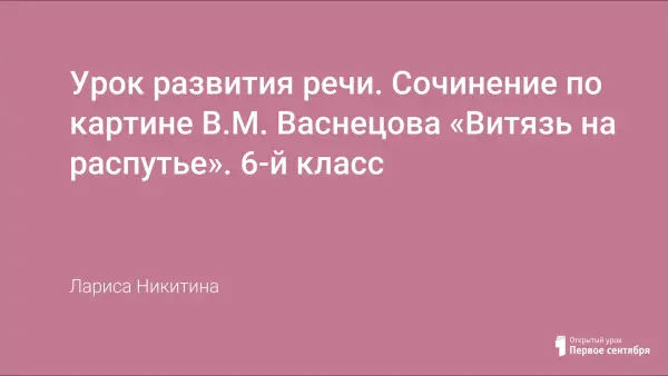 Урок развития речи. Сочинение по картине В.М. Васнецова «Витязь на распутье». 6-й класс