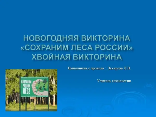 Внеклассное занятие привлекает внимание детей к проблеме сохранения хвойных деревьев в период предновогодних и новогодних праздников; воспитывает познавательный интерес, расширяет кругозор, совершенствует знания учащихся; развивает познавательную и творческую активность; воспитывает любовь и бережное отношение к родной природе. Внеклассное занятие можно проводить с учащимися 1−6-х классов.