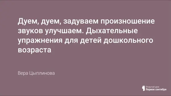 Цель дыхательных упражнений: улучшить функцию внешнего дыхания, освоить первичные приемы дыхательной гимнастики; выработка более длительного вдоха и более продолжительного выдоха; развитие фонационного (озвученного выдоха); развитие речевого дыхания; тренировка речевого дыхания в процессе произнесения фразы.