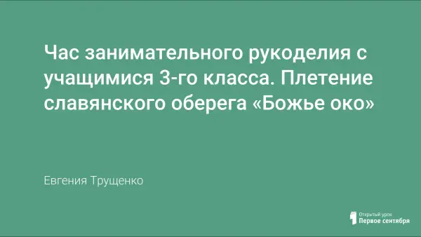 На рубеже веков люди снова обнаружили, что художественная деятельность помогает им избавиться от стресса, решать проблемы, преодолевать тяжёлые переживания. Во время занятий рукоделием активно задействуется мозг, особенно его правое полушарие, именно оно отвечает за обработку невербальной информации: интуицию, воображение, пространственную ориентацию и эмоции. Работа с группами детей показала, с каким восторгом дети плетут славянский оберег «Божье око».