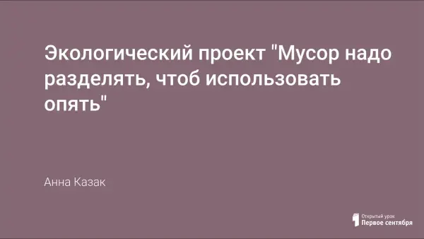 Лето – пора сбора не только ягод и грибов, но и... мусора. К сожалению, пластиковые бутылки и металлические банки стали неотъемлемой частью лесов и берегов рек. И это – признак, прямо скажем, не очень высокой культуры тех, кто любит отдыхать на природе. Цель проекта: создание условий для развития творчества, познавательного и ответственного интереса к экологическому состоянию окружающей среды через изготовление поделок из различного бытового мусора.