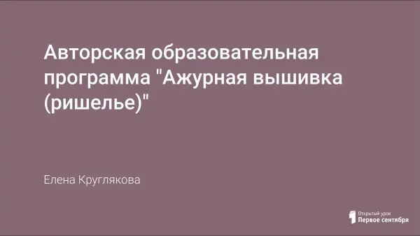 Данная программа предназначена для обучения учащихся 9–11-х классов общеобразовательных школ на уроках технологии и во внеурочное время. На занятиях учащиеся ознакомятся с историей вышивки. Научатся самостоятельно проектировать и выполнять красивые изделия с ажурной вышивкой. В ходе работ учащиеся совершенствуют навыки ручного вышивания, учатся организовывать свою деятельность.