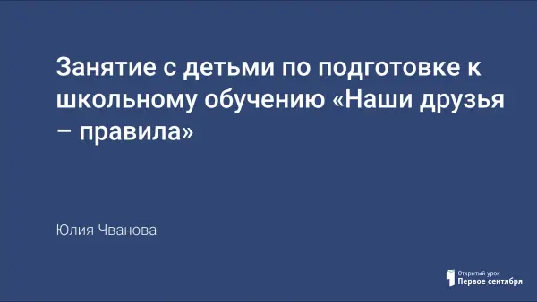 Занятие ориентированно на детей 6–7 лет, посещающих развивающие занятия по подготовке к школе. Проводится в начале цикла занятий. Формирует групповые правила на занятии. Развивает мотивационную готовность детей к школе. В занятие включена игра на развитие внимания, ритуальное приветствие и прощание.