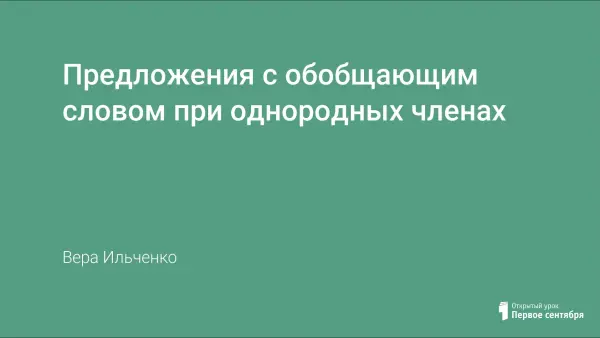Представлен конспект урока по закреплению знаний о предложениях с с обобщающим словом при однородных членах.