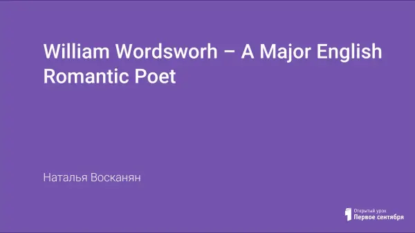 Литературная гостиная посвящена творчеству выдающегося поэта Великобритании — Уильяму Вордсворту. Формирует межкультурную компетенцию. Цель: развивать навыки разговорной речи и аудирования, интерес учащихся к культурному наследию Великобритании, умение работать в сотрудничестве.