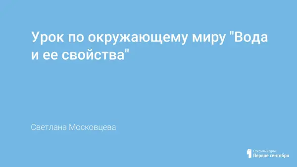 Данный урок разработан в рамках интегрированного курса «Окружающий мир» по программе Поглазовой О.Т. для учащихся 3-го класса, но может быть применим и для других УМК. Основные задачи урока: повторить знания учащихся о разнообразии видов водоемов, источников питьевой воды; формировать понимание особой важности воды для всего живого; формировать знания об основных физических и химических свойствах воды; продолжить формировать умения проводить опыты по исследованию свойств веществ.