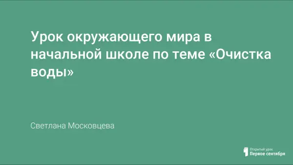 Задачи урока: повторить знания учащихся о свойствах чистой воды, сформировать знания о важном свойстве воды – способности растворять некоторые вещества, познакомить с методами очистки воды в городе и в быту; продолжить формирование экспериментальных умений, развивать умения моделировать, работать со схемами; воспитывать правила экологически грамотного поведения в природе и в быту.