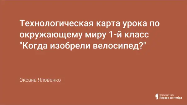 Цели урока: познакомить с историей развития и разнообразием современных велосипедов; научить приемам запоминания с опорой на наглядность и ассоциации; уточнение знаний об устройстве велосипеда.