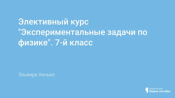 Элективный курс "Экспериментальные задачи по физике". 7-й класс