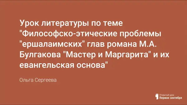 В основе данного проблемно-развивающего урока лежит вопрос: «Есть ли что-то, что объединяет роман, признанный православной церковью еретическим, с Евангелием»? Идея урока и его цели реализуются за счет использования широкого перечня методических приемов, логично ведущих к решению поставленных задач. Урок способствует межличностному и межкультурному диалогу, реализует межпредметные связи, формирует навыки поиска нужной информации.