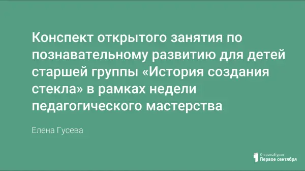 Конспект открытого занятия по познавательному развитию для детей старшей группы «История создания стекла» в рамках недели педагогического мастерства