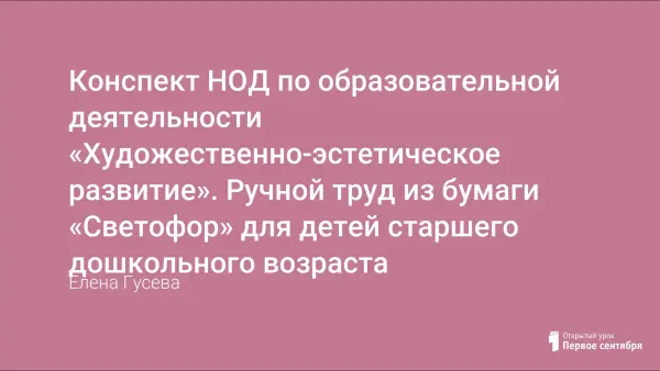 Конспект НОД по образовательной деятельности «Художественно-эстетическое развитие». Ручной труд из бумаги «Светофор» для детей старшего дошкольного возраста