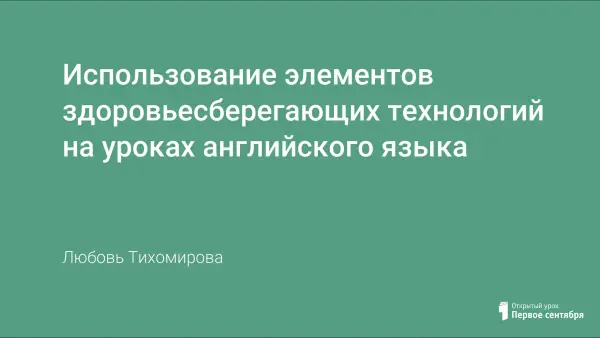 Педагогические исследования последних лет показывают, что уже в начальной школе возникают такие проблемы, как неудовлетворительное здоровье учащихся, низкий уровень их активности. На своих уроках английского языка для более эффективного достижения практических, общеобразовательных и развивающих целей, поддержания мотивации обучаемых в течение нескольких лет я использую элементы здоровье сберегающих технологий.