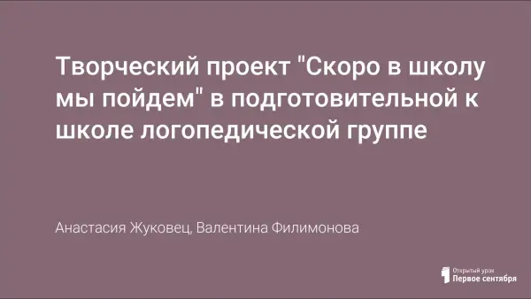 Творческий проект "Скоро в школу мы пойдем" в подготовительной к школе логопедической группе