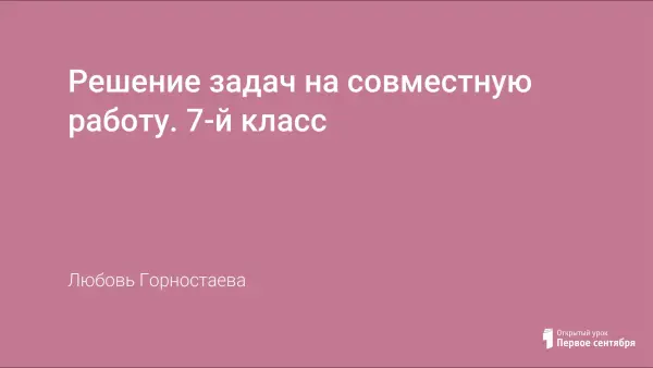 Цель урока: закрепление навыков решения задач «на совместную работу» арифметическим и алгебраическим способами. Развивать логическое мышление, математическую речь учащихся, межпредметные связи (физика). Воспитывать самоконтроль, выбирать способ решения задачи, умение анализировать полученный результат.