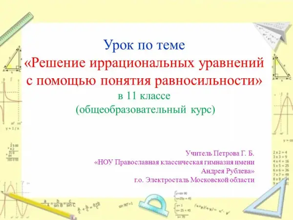 Решение иррациональных уравнений с помощью понятия равносильности. 11-й класс
