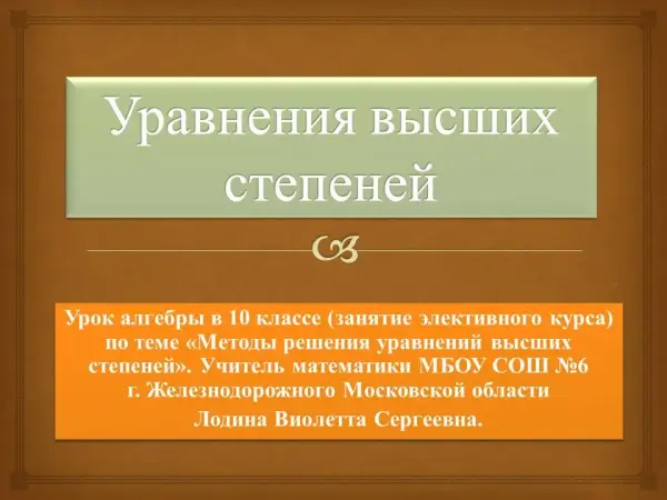 Урок алгебры в 10-м классе (занятие элективного курса) по теме «Методы решения уравнений высших степеней»