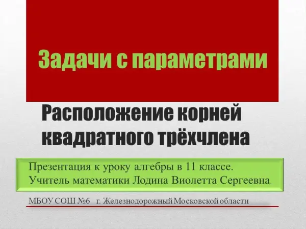 Урок алгебры в 11-м классе (занятие элективного курса) по теме «Задачи с параметрами. Расположение корней квадратного трёхчлена»