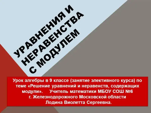 Урок алгебры в 9-м классе (занятие элективного курса) по теме «Решение уравнений и неравенств, содержащих модули»