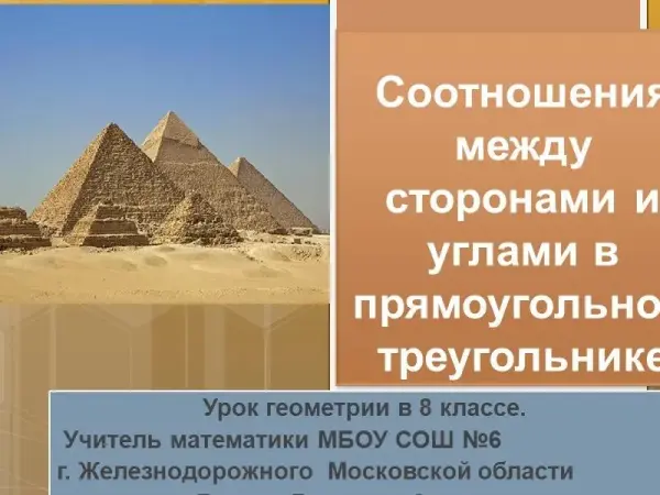 Урок геометрии в 8-м классе «Соотношение между сторонами и углами в прямоугольном треугольнике»