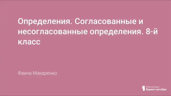 Данный урок – первый по теме «Согласованные и несогласованные определения». В ходе урока есть возможность повторить составное именное сказуемое, тире между подлежащим и сказуемым, способы связи слов в словосочетании. На уроке осуществляется формирование и развитие умений и навыков как предметных, так и общеучебных (сопоставление, ответы на вопросы и т.п.).