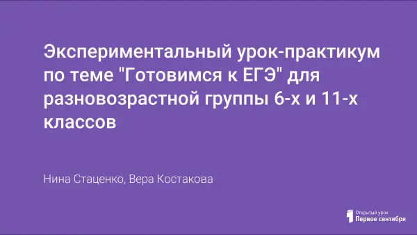Экспериментальный урок-практикум по теме "Готовимся к ЕГЭ" для разновозрастной группы 6-х и 11-х классов