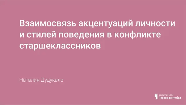 Многие подростки имеют аномальные проявления характера, что, безусловно, сказывается на их поведении в обществе, взаимодействии с окружающими, успеваемости в учебной деятельности и др. Цель работы: выявить взаимосвязь акцентуаций личности и стилей поведения в конфликте у старшеклассников.