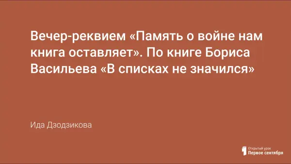 Вечер-реквием «Память о войне нам книга оставляет». По книге Бориса Васильева «В списках не значился»