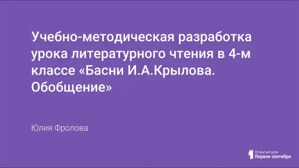 Урок знакомит с творчеством И.А. Крылова. Развивается устная речь учащихся, фантазия, творческое воображение, навыки выразительного чтения и чтения по ролям.