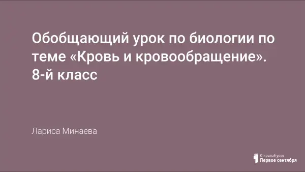Цель урока: обобщить и систематизировать знания по теме «Кровь и кровообращение»