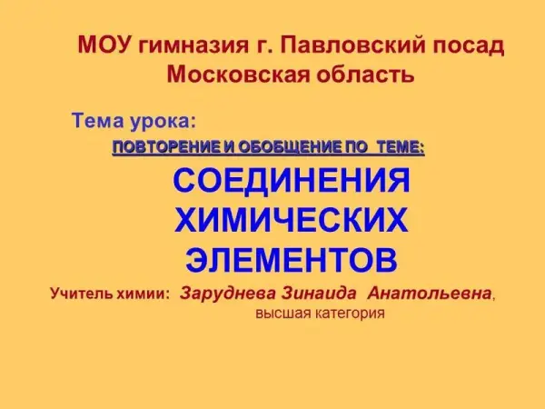 Цель урока: повторение и обобщение знаний по теме «Соединения химических элементов», подготовка к контрольной работе.