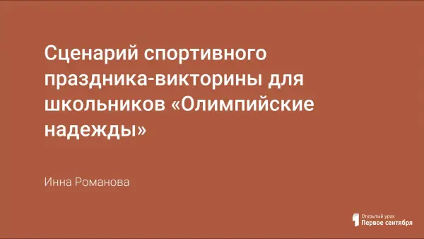 Праздник-викторина разработан для пропаганды здорового образа жизни, закрепления знаний об олимпийском движении у детей. Данный материал предназначен педагогам-организаторам, инструкторам и учителям физической культуры. Цель мероприятия: знакомство детей с историей возникновения Олимпийских игр и развитие интереса у детей к физической культуре и спорту, создание атмосферы радости и эмоционального благополучия.