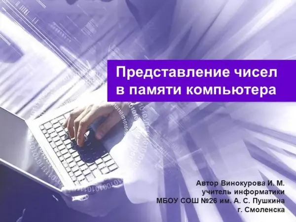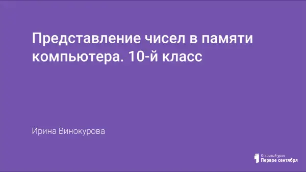 Цель урока: изучить представление чисел в памяти компьютера. Данная разработка может быть использована при изучении соответствующей темы в курсе информатики и ИКТ в 10-м классе, а также при проведении занятий элективного курса «Математические основы информатики».