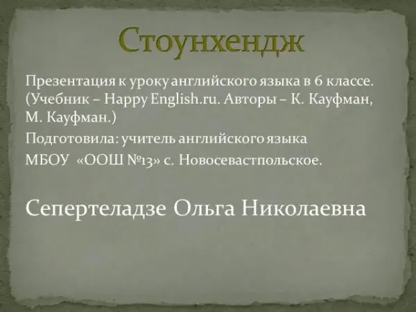 Тысячи туристов со всего мира стремятся увидеть Стоунхендж – каменную загадку в центе Англии, сооружение, построенное несколько тысяч лет тому назад. Каково назначение Стоунхенджа, кто были его строители – науке до сих пор достоверно не известно, хотя знаменитыми учеными, архитекторами неоднократно предпринимались попытки открыть эту тайну. Все существующие гипотезы остаются бездоказательными, а интерес к «камням, парящим в воздухе» не ослабевает.