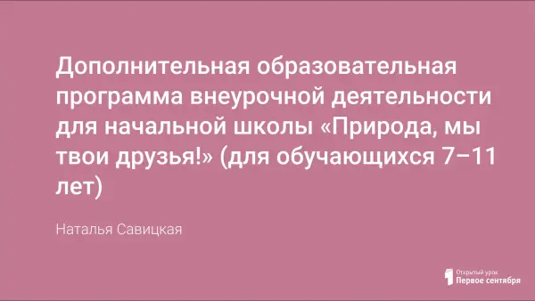 Дополнительная образовательная программа внеурочной деятельности для начальной школы «Природа, мы твои друзья!» (для обучающихся 7–11 лет)