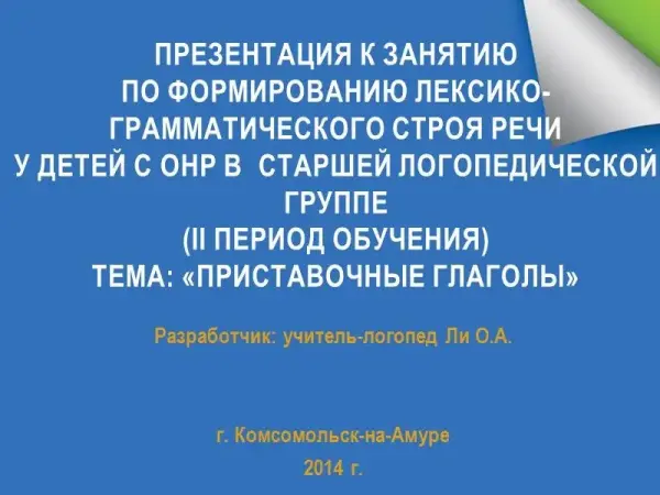В представленном конспекте НОД по развитию лексико-грамматического строя речи у детей с ОНР 5–6 лет ставится задача по формированию умений понимать и употреблять в речи приставочные глаголы. В структуре занятия прослеживается алгоритм формирования грамматических категорий. Демонстрационный материал, графические и предметные схемы, мультфильм, представленные в презентации, сюрпризный момент, игровые упражнения способствуют развитию у детей пространственного восприятия и мышления, речевой и познавательной активности.