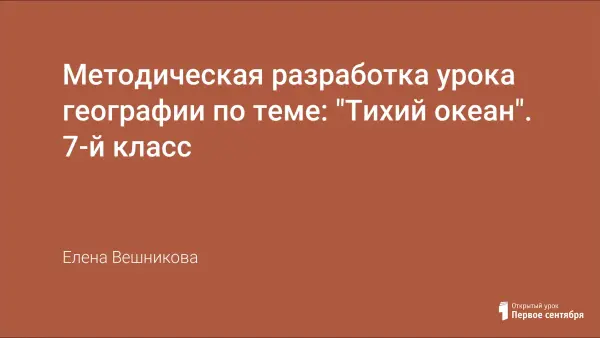 Урок поможет сформировать целостные представления учащихся о Тихом океане в прошлом и сегодня, о природе и хозяйственной деятельности человека в Тихом океане.