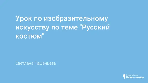 Урок знакомит детей с женским и мужским русскими народными костюмами; пробуждает интерес к народным традициям. Закрепляется понятие «орнамент», его виды, расположение и значение. Совершенствуются изобразительные навыки учащихся, умение работать кистью и красками.