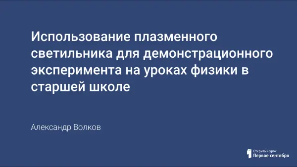 Демонстрационный эксперимент является одной из основных составляющих урока физики. Помимо стандартных средств учителя физики зачастую используют «нефизические» приборы: фены, физические игрушки и сувениры. Одним из таких приборов может стать плазменный светильник (шар, лампа). В курсе физики старшей школы плазменный шар может быть использован при рассмотрении таких тем, как «Потенциал и разность потенциалов», «Конденсатор», «Электромагнитное поле», «Энергетические уровни» и др.