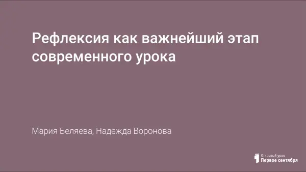 Проблема организации и корректировки образовательной деятельности связана с успешностью ее осмысления. Для того чтобы человек мог понять себя, контролировать и регулировать свои действия, развивать свой внутренний мир, он должен овладеть рефлексией. В статье описывается понятие рефлексии, её важность в современном уроке, а также классификация и некоторые методы и приемы рефлексии.