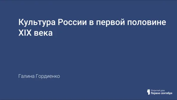 Цель урока: знакомство учащихся с основными достижениями россиян в культурной сфере в первой половине XIX века.